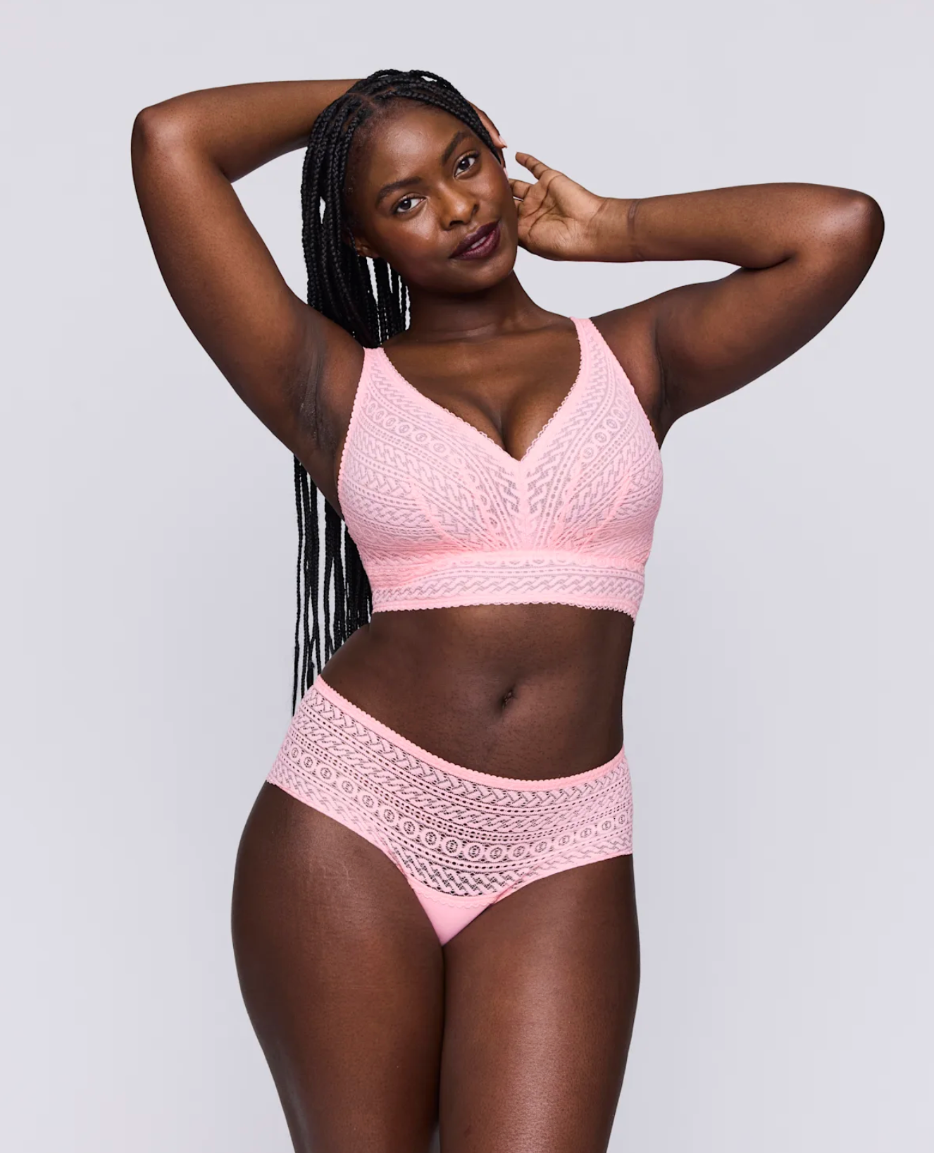 Opulent thong with lots of lace that provides a bit more coverage across the buttocks. A sexy style great for women who don’t usually wear a thong! A soft shade of pink – Pink Parfait is fashionable, feminine, and easy to combine.