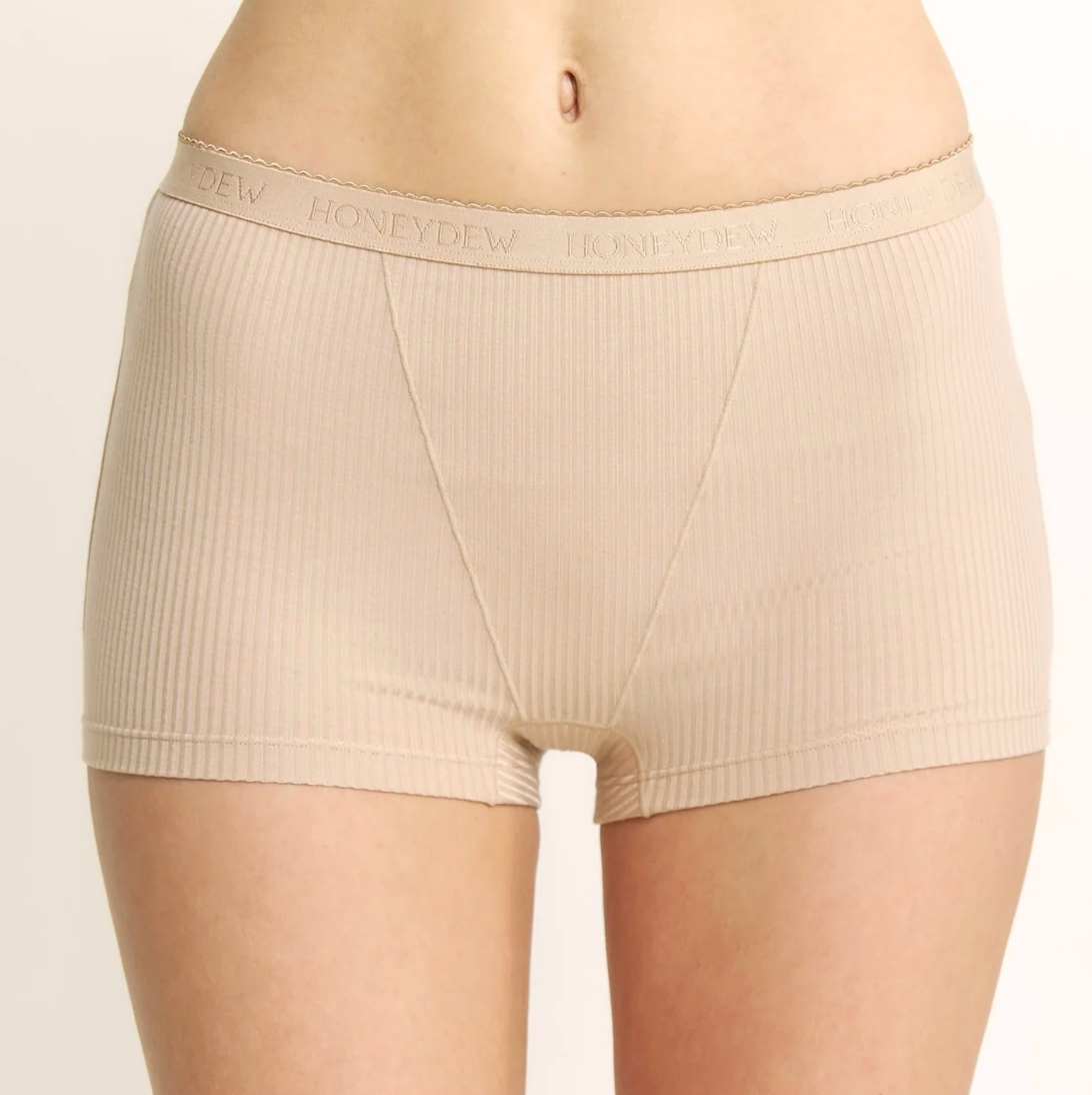 Your new everyday go-to intimates. The Emma collection is all about soft, stretchy ribbed fabric that feels amazing under anything. The high coverage boyshort underwear is finished with a signature scallop-edge Honeydew logo elastic waistband that gives everything a sport-sweet vibe.