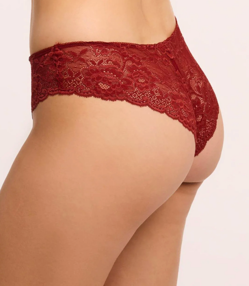 This beautiful all-lace panty has a slightly narrower back for a sexy look. The smooth, lace lies flat on the skin around the thighs for a sleek silhouette. Best worn with A-line skirts, jeans or relaxed fit pants, the Brazilian finds its perfect match in one of our lace bras. Features: • Smooth stretch floral lace • Ultra-flat elastic at waist • Minimal back coverage • 100% cotton gusset lining Fabric: 85% Nylon, 15% Spandex. Ethically made. Washing Instructions: • Hand wash, cold water OR machine wash closed in mesh bag, gentle cycle • Hang to dry For hygienic reasons, all panties are final sale. This beautiful all-lace panty has a slightly narrower back for a sexy look. The smooth, lace lies flat on the skin around the thighs for a sleek silhouette. Best worn with A-line skirts, jeans or relaxed fit pants, the Brazilian finds its perfect match in one of our lace bras. Features: • Smooth stretch floral lace • Ultra-flat elastic at waist • Minimal back coverage • 100% cotton gusset lining Fabric: 85% Nylon, 15% Spandex. Ethically made. Washing Instructions: • Hand wash, cold water OR machine wash closed in mesh bag, gentle cycle • Hang to dry For hygienic reasons, all panties are final sale.