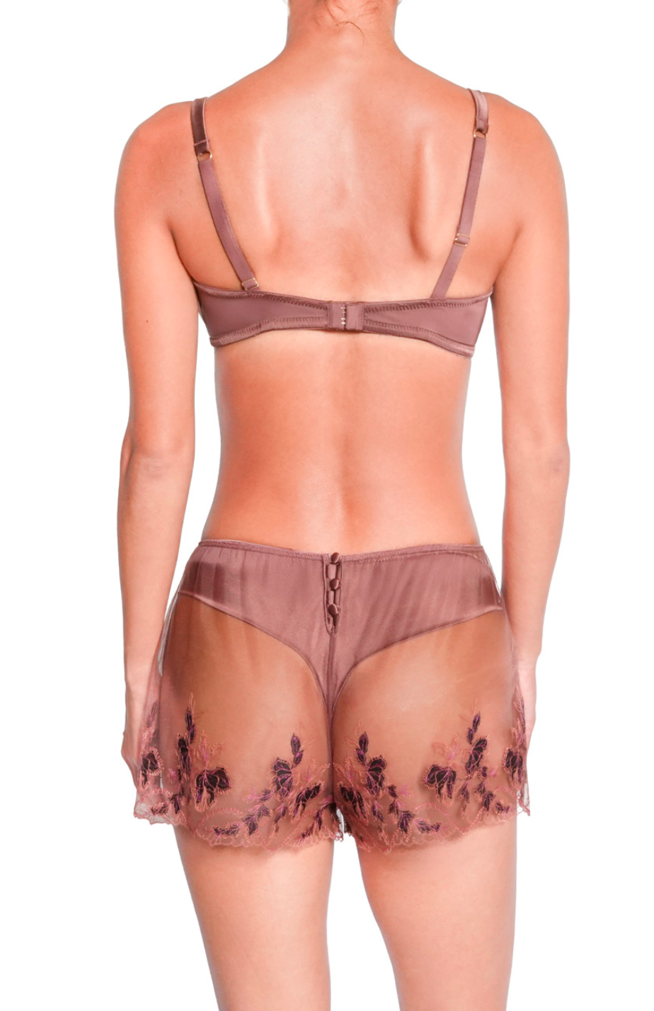 The Poème Silk Tanga embodies understated elegance and effortless comfort. Crafted from sumptuous silk, it glides softly over the skin, offering a smooth, second-skin feel. The design is sleek and minimal, with a flattering cut that enhances natural curves while maintaining refined simplicity. A subtle nod to the Poème line’s signature femininity, this tanga pairs perfectly with the collection’s underwire and bralette, completing a look of timeless sophistication.